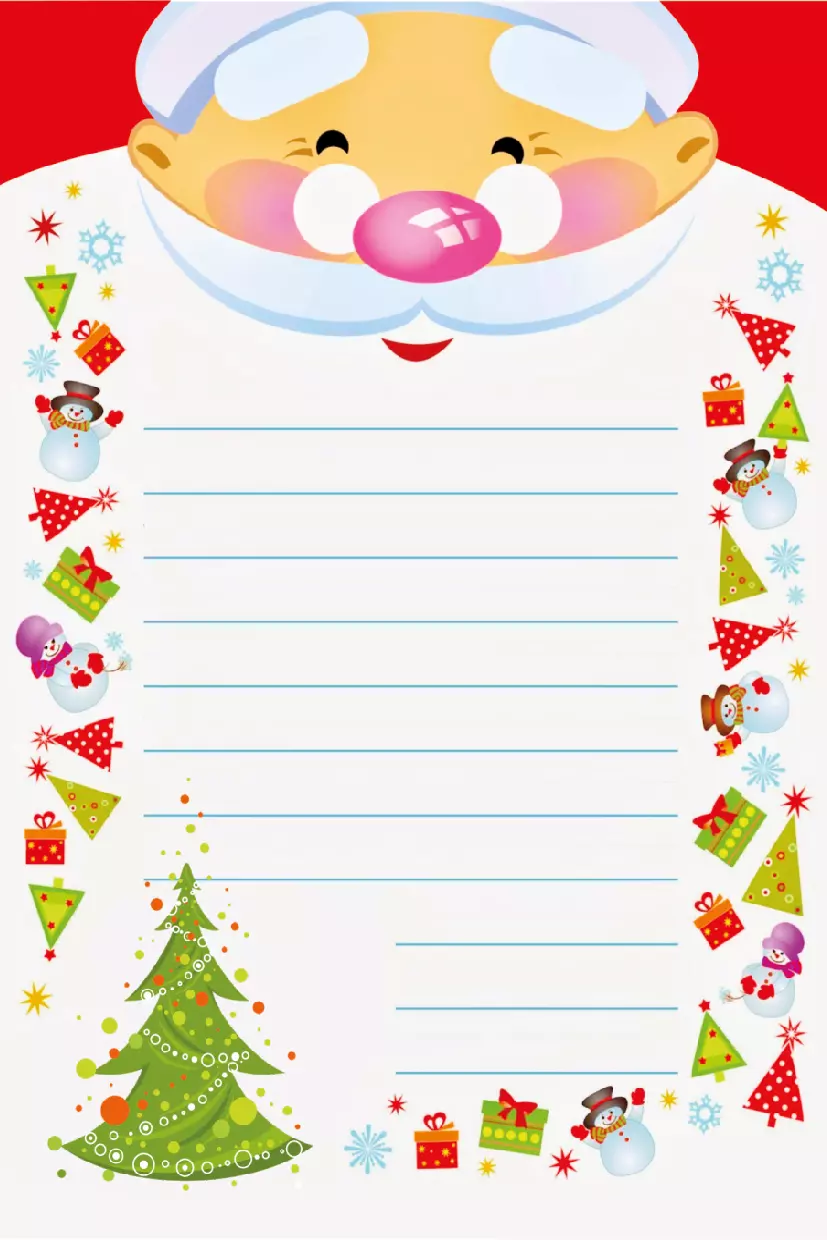 Завдяки цим чарівним новорічним бланкам діти зможуть написати листа Св. Миколаю. Дитинство - золота пора, коли віра в чудеса настільки сильна, що, здається, ніби казкові герої живуть поруч з нами. А День Св. Миколая для всіх діточок - чарівний час, коли можна розповісти доброму дідусеві свої маленькі секрети або просто попросити бажаний подарунок під подушку. Запропонуйте дитині написати лист Св. Миколаю на чарівному новорічному аркуші. Нехай малюк помріє, що хоче отримати в подарунок, про що може розповісти Св. Миколаю, чим похвалитися. Чудовий настрій гарантовано! Звичайно Св. Миколаю навряд чи сподобається, якщо дитина почне свій лист з прохань про подарунки. Пропонуємо в новорічному листі дотримуватися таких розділів: - Вітання (Добрий день, дорогий Св. Миколай, Шановний Св. Миколай...) - Трохи інформації про дитину з зазначенням імені та прізвища, віку ... - Короткий опис своїх досягнень за минулий рік. - Можна трішки написати про свої плани на наступний рік. - Ввічливе прохання про бажаний подарунок (бажано, щоб подарунків було декілька, щоб Св. Миколай міг вибрати) На закінчення потрібно обов'язково подякувати доброго дідуся і попрощатися до наступного року.