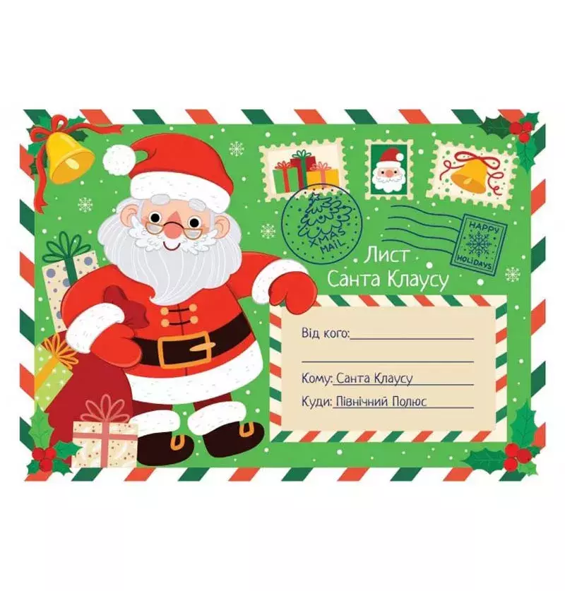 Чудовий подарунок до зимових свят для малечі «Лист Санта Клаусу». Адже це не просто лист, а цікаві завдання та улюблений герой. Малеча розповість про себе, визначиться з подарунком,допоможе Санті знайти свій дім, а також запланує хороші справи на наступний рік.