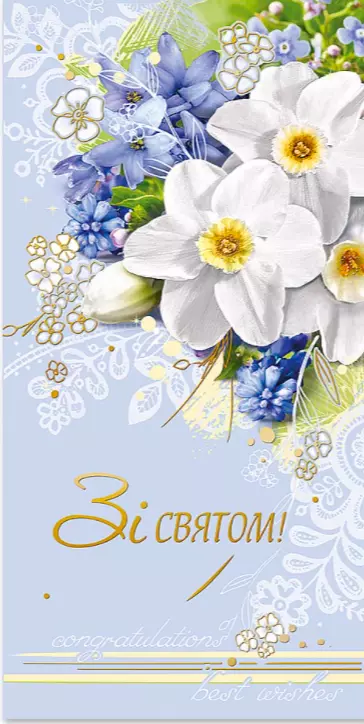 Листівка подвійна Е євроформат з тисненням Е-4912 "Зі святом!"