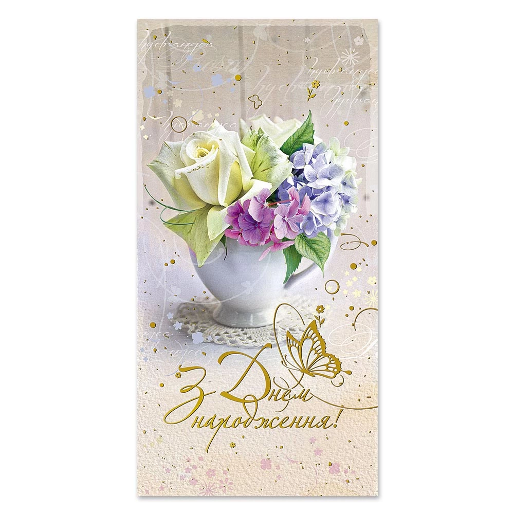 Листівка подвійна з брокатом та тисненням з конвертом в упаковці 4271