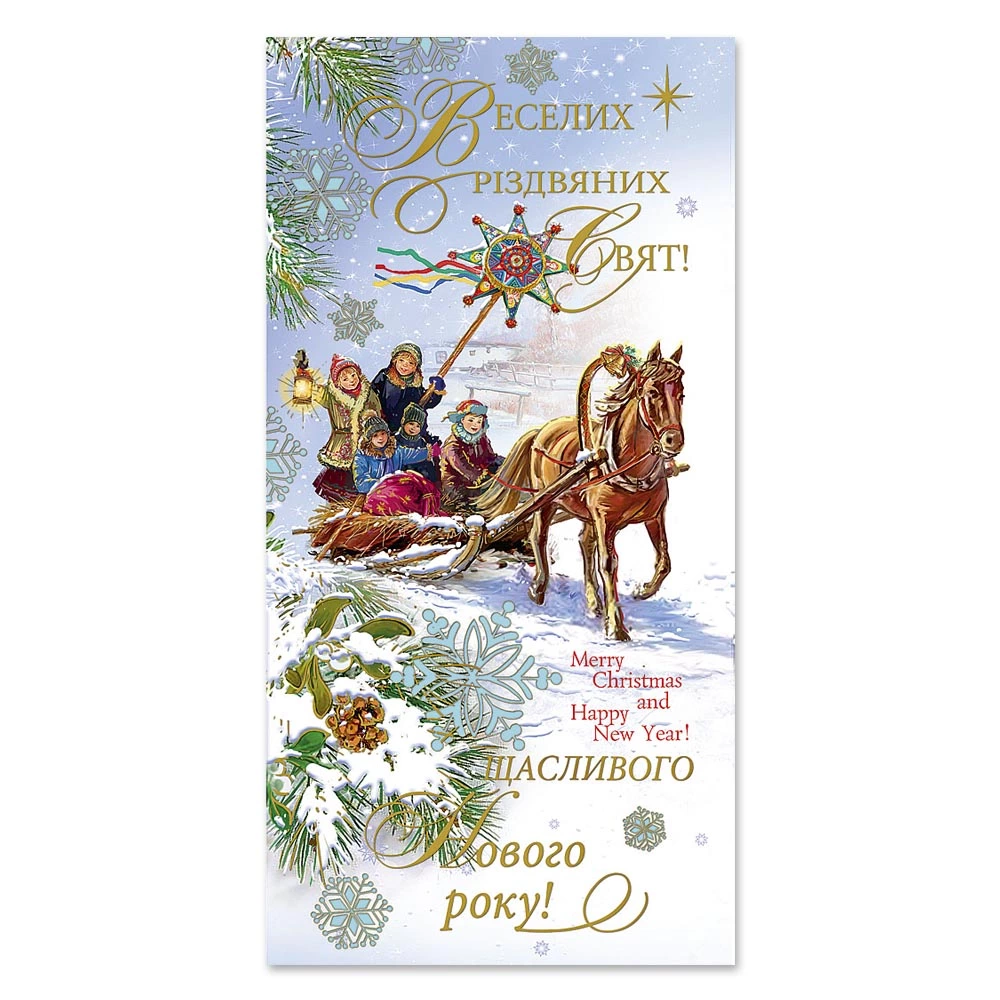 Листівка подвійна з брокатом та тисненням з конвертом в упаковці 4634