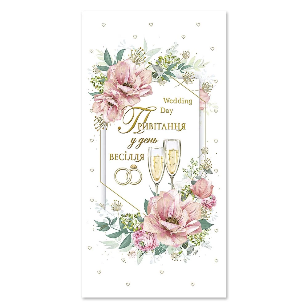 Листівка подвійна з брокатом та тисненням з конвертом в упаковці 4686