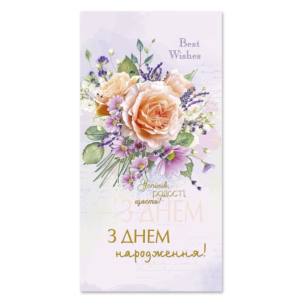 Листівка подвійна з брокатом та тисненням з конвертом в упаковці 4759