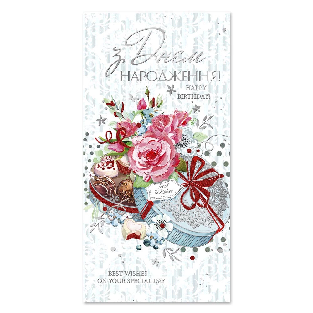 Листівка подвійна з брокатом та тисненням з конвертом в упаковці 4764