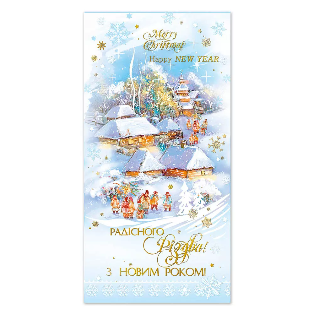 Листівка подвійна з брокатом та тисненням з конвертом в упаковці 4860
