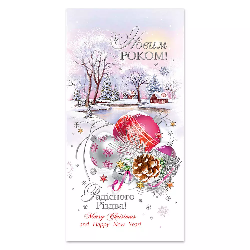 Листівка подвійна з брокатом та тисненням з конвертом в упаковці 4862
