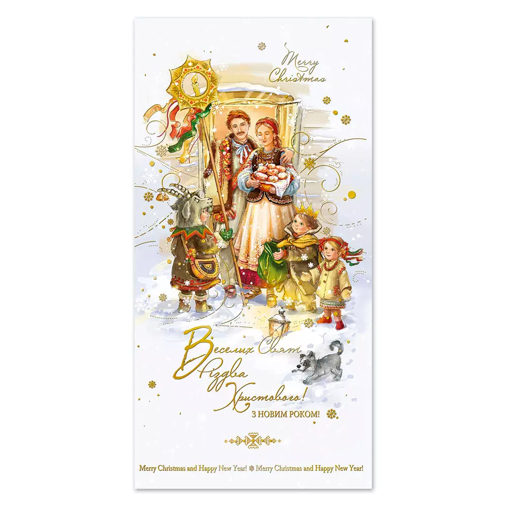 Листівка подвійна з брокатом та тисненням з конвертом в упаковці 4866