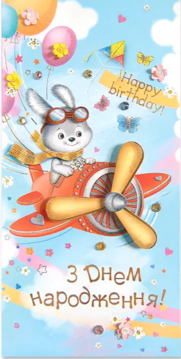 Листівка ручної роботи Р з конвертом в упаковці Р-1230 (З Днем народження!)