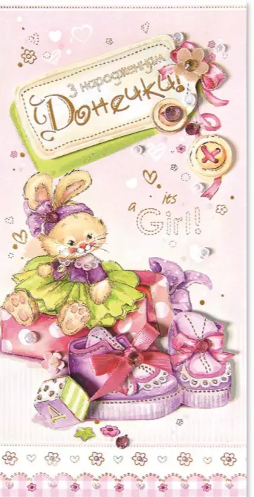 Листівка ручної роботи Р з конвертом в упаковці Р-1232 (З нарожденням донечки!)