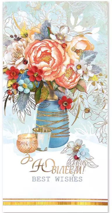 Листівка ручної роботи Р з конвертом в упаковці Р-1242 (З Ювілеєм!)