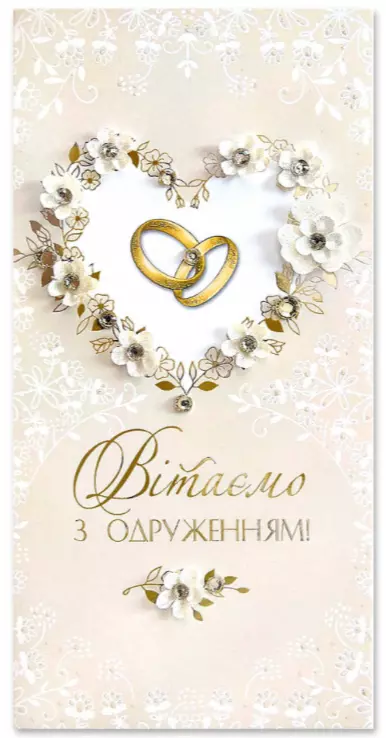 Листівка ручної роботи Р з конвертом в упаковці Р-1258 "Вітаємо з одруженням!"