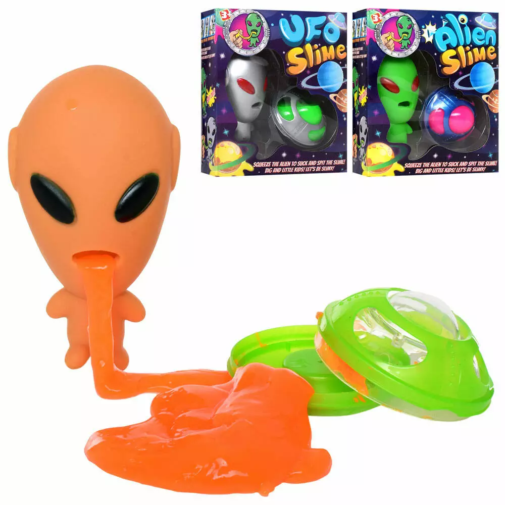 Лизун 780A баночка з кришкою, формочка-прибулець, 3 види, кор., 17-20-6 см.