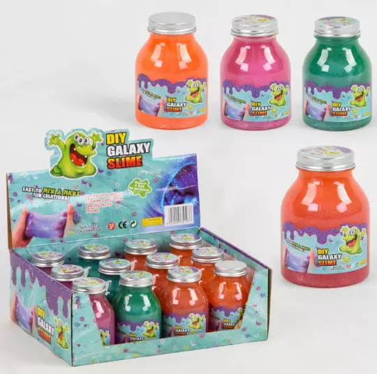 Слайм M 44583 відносяться до категорії надувних Лизунів та поєднує в собі дивовижні властивості: м'якість, податливість і еластичність. Прикрашений перламутровими блискітками і має приємний фруктовий аромат. Якщо розтягувати лизун, то утворюється майже прозора плівка з якої можна видувати бульбашки. Також даний антистрес має дуже високу стрибучістю і пружністю, тому відмінно відскакує від рівній поверхні не залишаючи слідів. Слайм поставляється в великих пляшках з щільно закриваються кришками. У такій оригінальній упаковці рекомендується зберігати лизун після гри, для того, щоб він не висох і не втратив свою еластичність Висота пляшечки - 10 см. У блоці 12 слаймів: рожевого, оранжевого, фіолетового і бірюзового кольору.