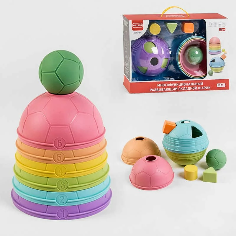 Логічна гра 2010-8 R (18/2) сортер, пірамідка, 6 півсфер, м'ячик, три фігурки, в коробці