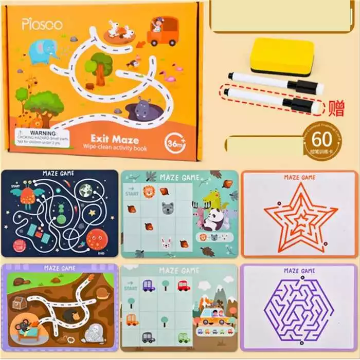 Логічна гра С 47861 (36) ""Багаторазова книга – лабіринт"", 30 ігрових карток. два фломастери, тека, наліпки, в коробці