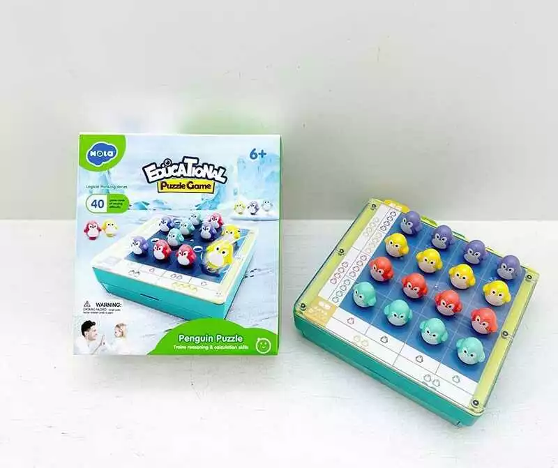 Логічна гра E 7986 (36) ""Hola"", 16 пінгвінів, 20 ігрових карток, платформа з шухлядкою, в коробці