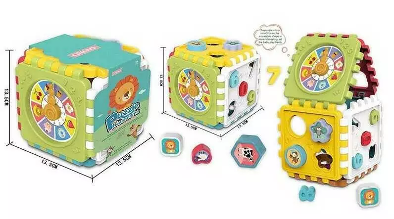 Логічний куб 6662-8 (108/2) пазлові елементи, сортер 2х видів, аналоговий годинник, в пакеті