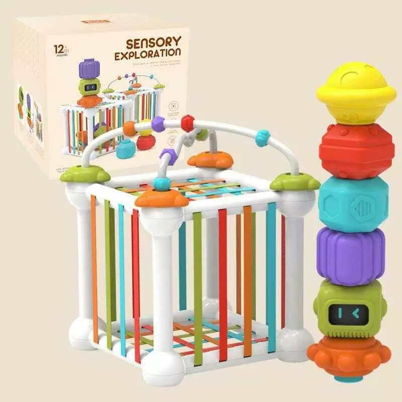 Логічний куб YB 11631 штрих - 1594 (36) брязкальця, сенсорні елементи, пірамідка, в коробці