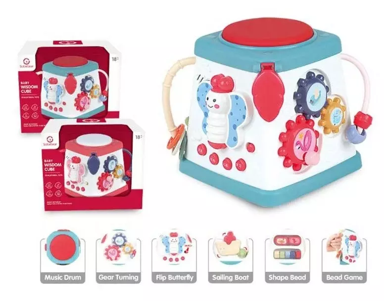 Багатофункціональний ігровий куб YL 505-11 стане на довгий час улюбленою забавою для Вашого малюка! Особливості: - компактні розміри, сучасний дизайн та стильне матове покриття; - безліч розвиваючих граней; - мерехтливе підсвічування; - чудові звукові ефекти; - дана модель сприяє комплексному всебічного розвитку. Ігрові грані: - кругла кнопка-барабан; - шестерні, що обертаються; - кубики-крутилки із зображеннями тварин; - рухливий кораблик; - пальчиковий лабіринт; - метелик перевертиш; - 4 функціональні кнопки які при натисканні активують: мелодії, веселі дитячі пісеньки (англійською мовою), вивчення англійського алфавіту, цифр та назви тварин. Така іграшка сприяє розвитку у дитини дрібної моторики, уяви, звукового та колірного сприйняття, логічного мислення та фантазії. Звукові та світлові ефекти працюють від 3-х батарейок типу "АА" - в комплект не входять.