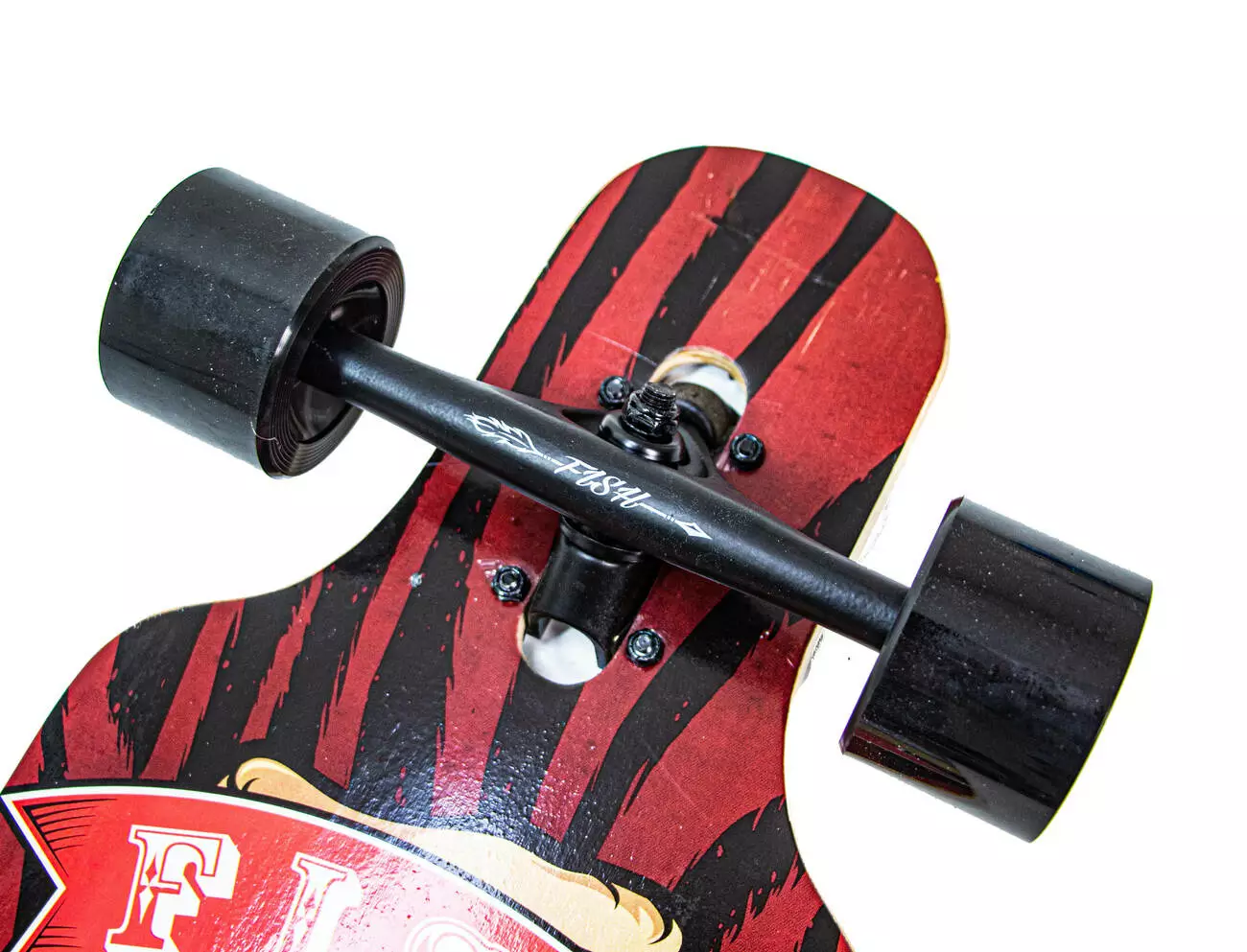 <p><em><strong>Оригинальный лонгборд премиум качества от мирового бренда "Fish" !</strong></em></p><br /> <p><em><strong>Характеристика:</strong></em></p><br /> <p><em><strong>Амортизаторы:</strong> полиуретан 92А</em></p><br /> <p><em><strong>Тип: </strong>Лонгборд Фрирайд</em></p><br /> <p><em><strong>Возрастная группа:</strong> от 7-8 лет</em></p><br /> <p><em><strong>Материал деки:</strong> Канадский клен.</em></p><br /> <p><em><strong>Размер деки</strong>: 102 х 22 см</em></p><br /> <p><em><strong>Жесткость колес</strong>: PU 70 х 65 мм</em></p><br /> <p><em><strong>Подшипник: </strong>Фирменные подшипники АВЕС-7</em></p><br /> <p><em><strong>Макс.нагрузка:</strong> 100 кг</em></p><br /> <p><em><strong>Подвеска:</strong> Фирменная Fish.</em></p><br /> <p><em><strong>Цвет скейта:</strong> Верхняя часть - наждачное покрытие, нижняя часть - цельный рисунок.</em></p><br />
