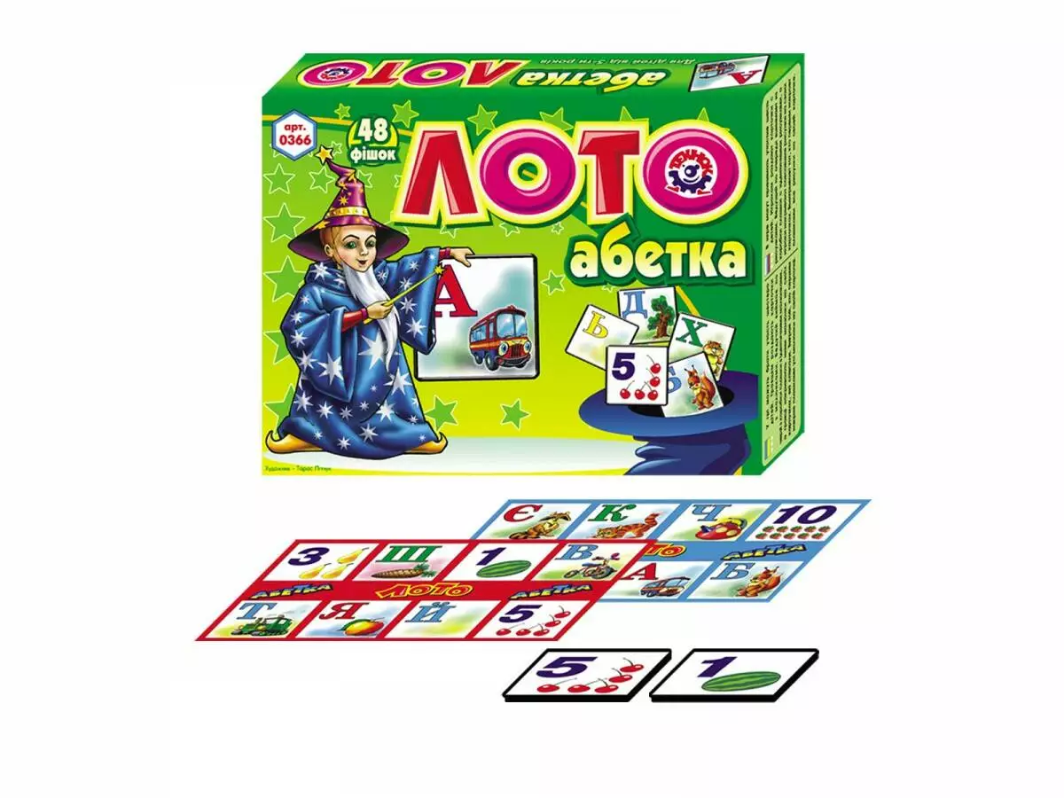 «Українська абетка» - це унікальна можливість, за допомогою гри підготувати свого малюка до занять в садочку чи школі. Кожна ігрова картка оформлена яскравим і красивим зображенням предмета, тварини, птахи або комахи, які повинні викликати в мозку у крихти асоціацію з певною буквою. За допомогою такого прийому в навчальному процесі, Ваш малюк з надзвичайною легкістю і швидкістю освоїть всю необхідну інформацію. Забава з заявленим дитячим лото, вплине на розвиток у карапуза пам'яті, зорового сприйняття, образного і логічного мислення. Характеристики Іграшка зроблена з щільного картону. Навчає українському алфавітом. Довжина: 16 см Висота: 12 см Товщина: 4 см Комплектація 6 карток, 48 фішок.