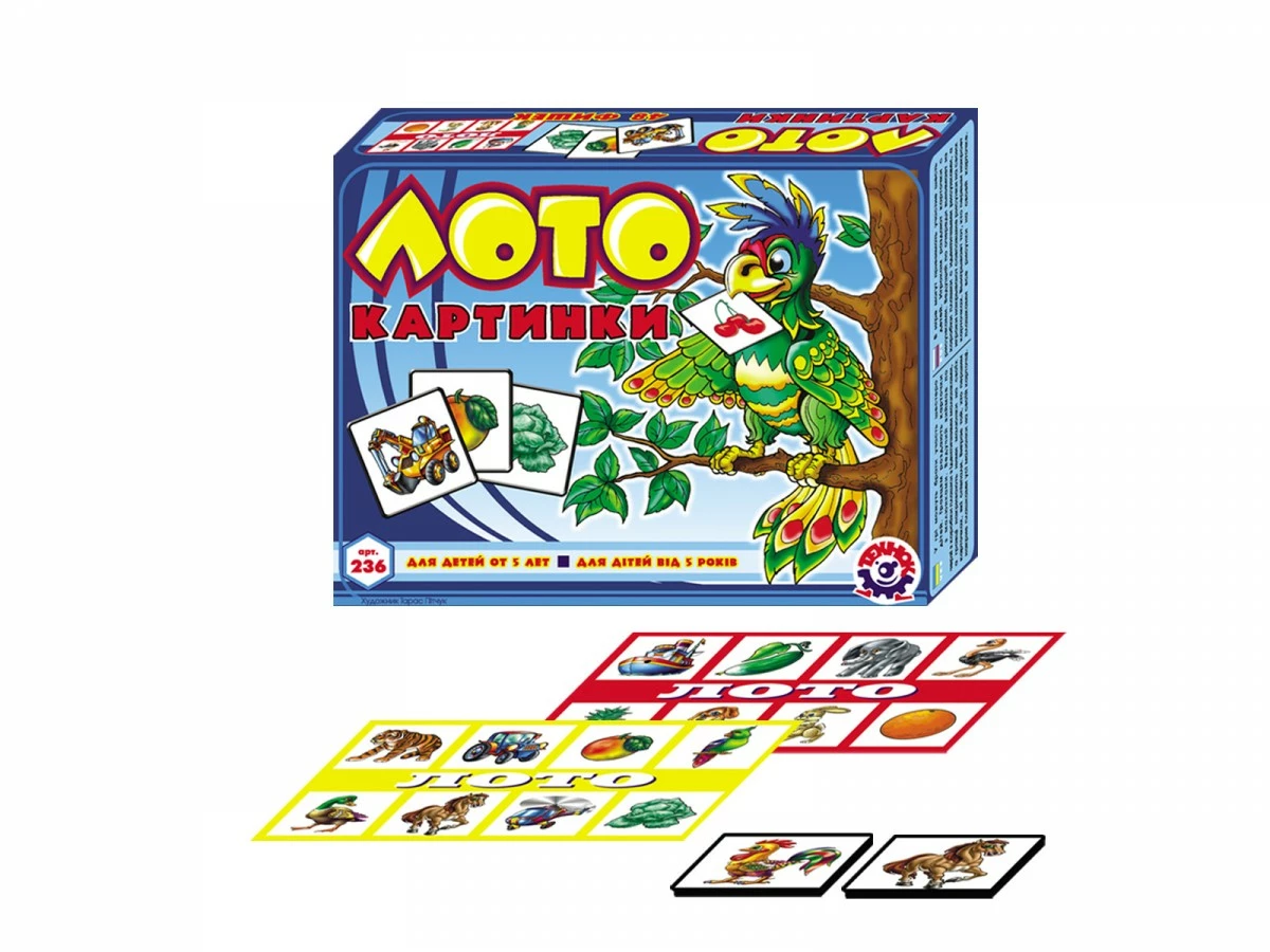 Лото з малюнками підготує Вашого малюка до школи і дозволить дитині поліпшити пам'ять, уяву, абстрактне і образне мислення, уважність і словниковий запас. Подаруйте своєму малюку справжні веселощі і гарний настрій! Крім того, в даній захоплюючій грі можуть брати участь до шести малюків. Всім гравцям роздають картки з малюнками. Ведучий по черзі виймає з коробки фішки з малюнками, після цього гравці з такими ж зображеннями закривають збіглися малюночки на своїх картках. Виграє той карапуз, хто першим накриє фішками всі зображення на своєму листочку. Комплектація 4 листочка з фішками, 6 листочків лото.