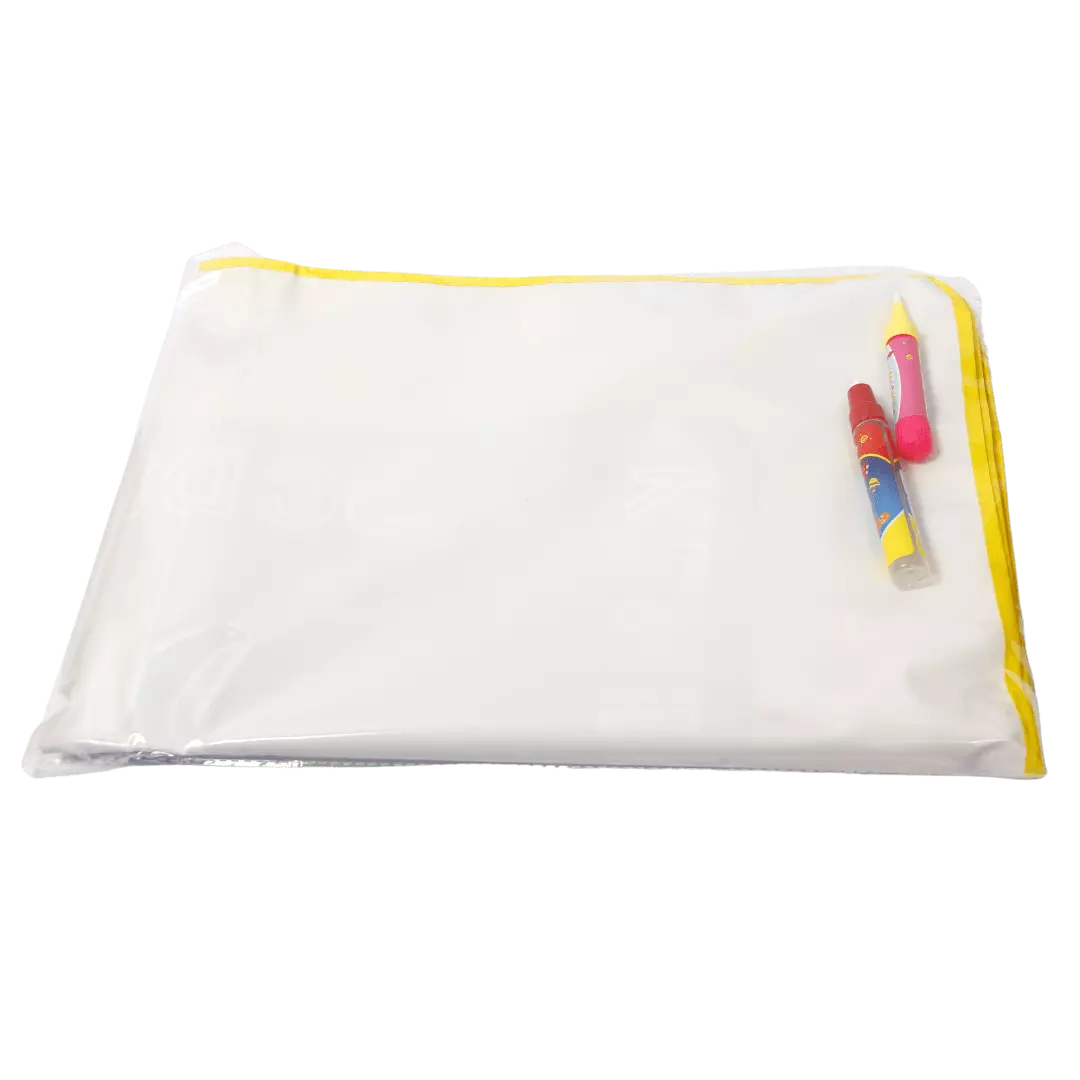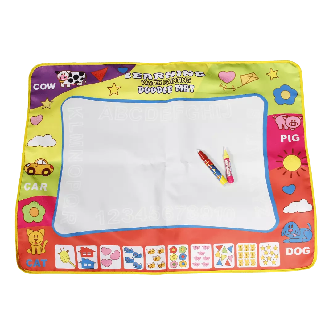 Призначений для дітей від 3 років. У комплект входить: килимок для малювання і 2 маркера для води. Дитина зможе малювати маркером, який наповнюється звичайною водою. При потрапляння води на килимок проявляється блакитний колір. Також на килимку представлений шаблон англійського алфавіту, що допоможе вивчення нової мови в ігровій та доступній формі. За висиханню води (через 5 хвилин), картинки зникають і можна знову приступити до малювання нових. Килимок для малювання сприяє розвитку дрібної моторики пальців, художніх здібностей, уяви, творчого мислення, стимулювати самовираження, розвивати посидючість, логіку. Легкий і компактний килимок, завжди можна взяти з собою, килимок виготовлений з нетоксичних матеріалів і повністю безпечний.