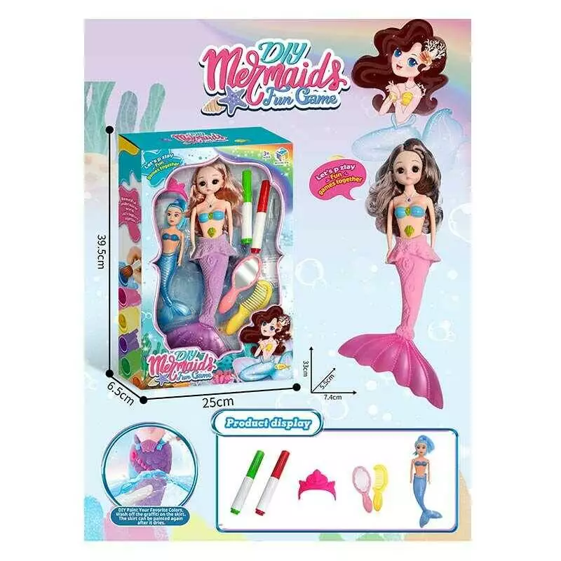 Лялька 068-6 (36/2) 2 русалоньки, маркери для розмальовування хвоста, аксесуари, в коробці