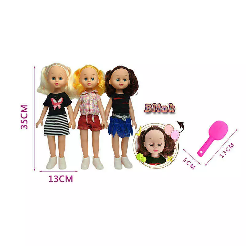 Лялька 2222 (192/2) 3 види, закриває очі, щітка для волосся, висота 35 см, у пакеті, ВИДАЄТЬСЯ ТІЛЬКИ МІКС ВИДІВ