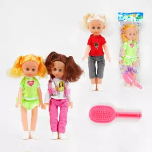 Лялькова подружка у стильному вбранні із задоволенням складе компанію на прогулянці та візьме участь у цікавій сюжетній грі! Іграшка має гарне шовковисте волосся, яке зібране у хвости, одяг та черевики, які за бажанням можна легко зняти. Лялька відрізняється витонченими рисами обличчя та блакитними очима з густими віями, які легко закриваються. Особливості: - висота ляльки 35 см; - гарний дизайн ляльки; - одяг та взуття ляльки можна зняти за бажанням; - закриває очі; - до комплекту входить щітка для волосся; - тіло ляльки виконано з м’якого пластику, безпечного для здоров’я дитини; - допоможе відтворити цікаві ігрові сюжети.