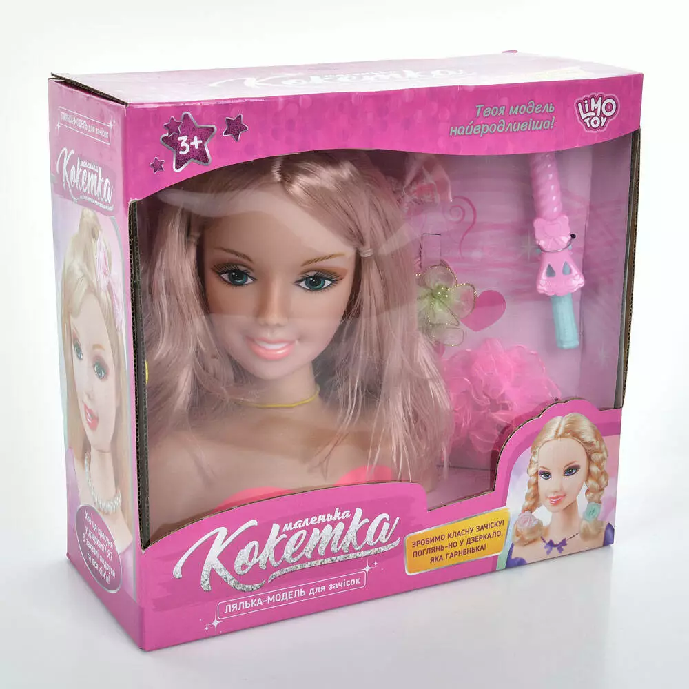 Лялька 2312-2 голова для зачісок,заколочки,гребінець,плойка,резинки для волосся, кор.,27,5-25,5-12см