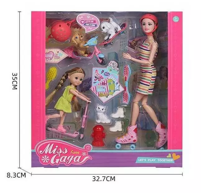 Лялька 51810 (30/2) висота 30 см, 2 ляльки, 3 домашні улюбленці, спортивний транспорт, шоломи, в коробці