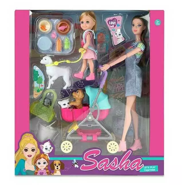 Лялька 51815 (30/2) висота 30 см, 2 ляльки, 3 домашні улюбленці, візочок, знімний одяг та взуття, в коробці