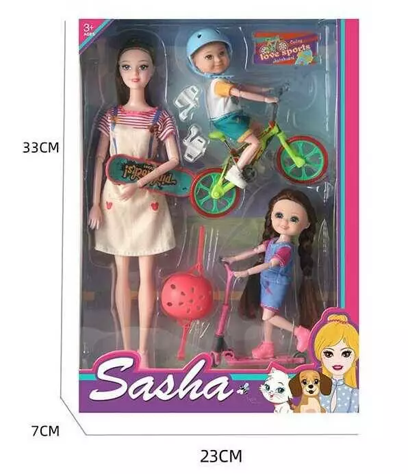 Лялька 51833 (48/2) ""Спортивна родина"", 3 ляльки, шоломи, спортивний транспорт, знімний одяг та взуття, в коробці