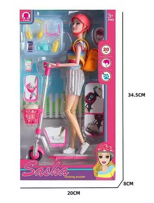 Лялька 51837 (40/2) висота 29 см, самокат, шолом, рюкзак, аксесуари, в коробці