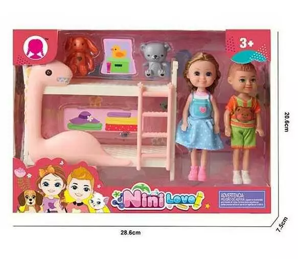 Лялька 55853 (60/2) висота 15 см, 2 ляльки, двоповерхове ліжко, фігурки, в коробці