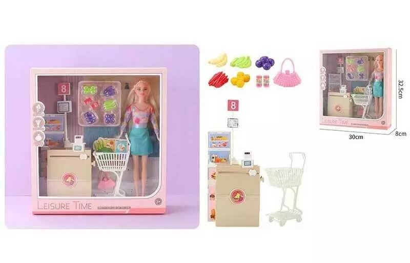 Лялька 784 D (36/2) магазин, візочок, набір продуктів, сумочка, висота 30 см, в коробці