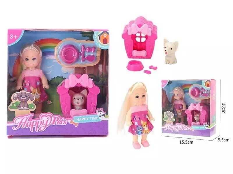 Лялька 787 A (240/2) висота 12 см, улюбленець, будка, аксесуари, в коробці