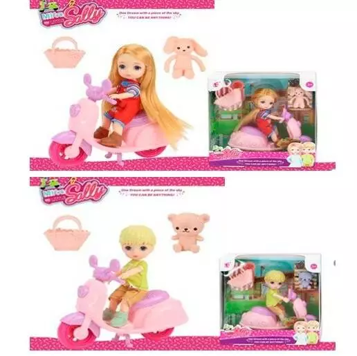 Лялька 91069-A-B шарнірна, мотоцикл, тварина, сумка, 2 види (хлопчик, дівчинка), кор., 17-18-8 см.