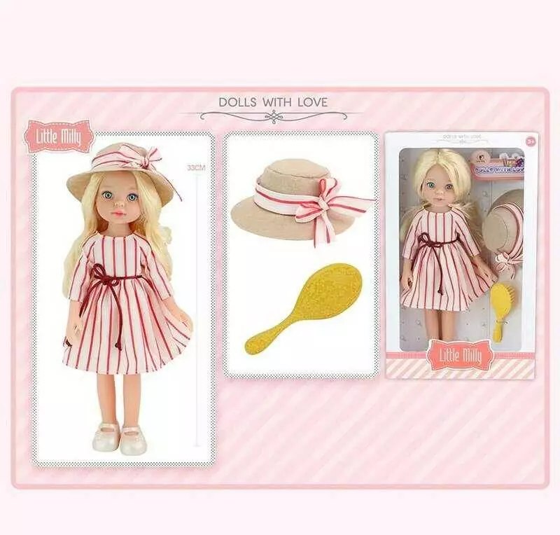 Лялька 91099 E (36) висота 33 см, капелюшок, щітка для волосся, в коробці