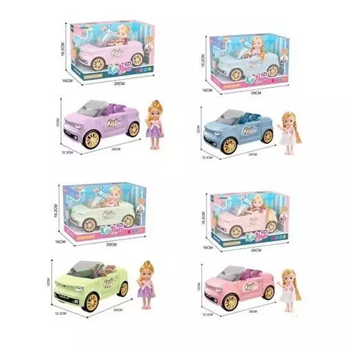 Лялька 925-146-148-149-151 з машинкою, 4 кольори, кор., 29-16-18 см.