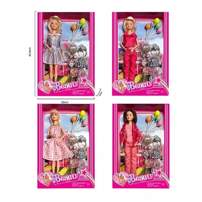 Лялька 9528 A (84/2) 4 види, ВИДАЄТЬСЯ ТІЛЬКИ МІКС ВИДІВ, шарики, сумочки, косметика, намисто, діадема, ключик, сережки, в коробці
