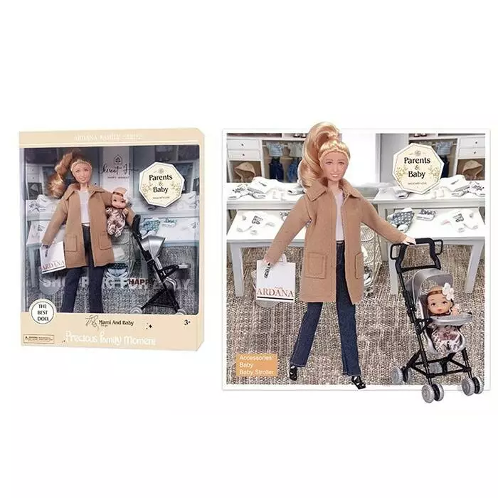 Лялька A789-3 шарнірна, з донькою (пупс), візок, кор., 28-36,5-8,5 см.