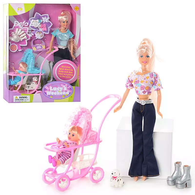 Лялька DEFA 20958 донька, собачка, цуценята 2 шт., коляска, 3 види, кор., 34-25,5-6,5 см.