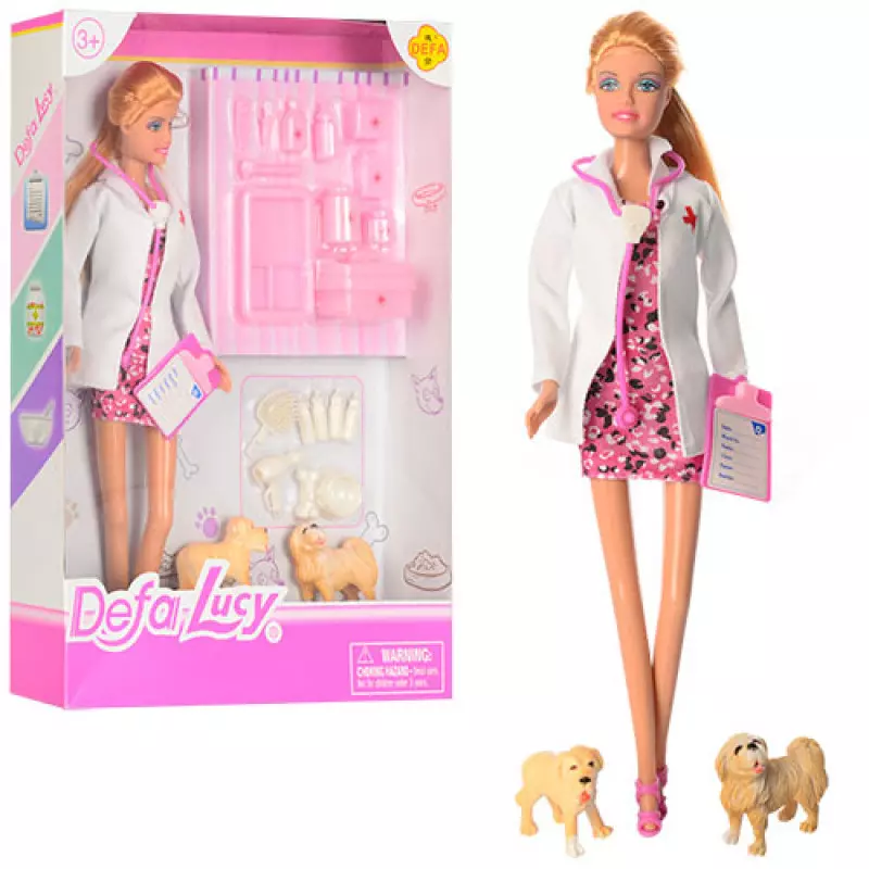 Лялька DEFA 8346A лікар, валіза, інструменти, собачка 2 шт., кор., 23-32,5-5 см.