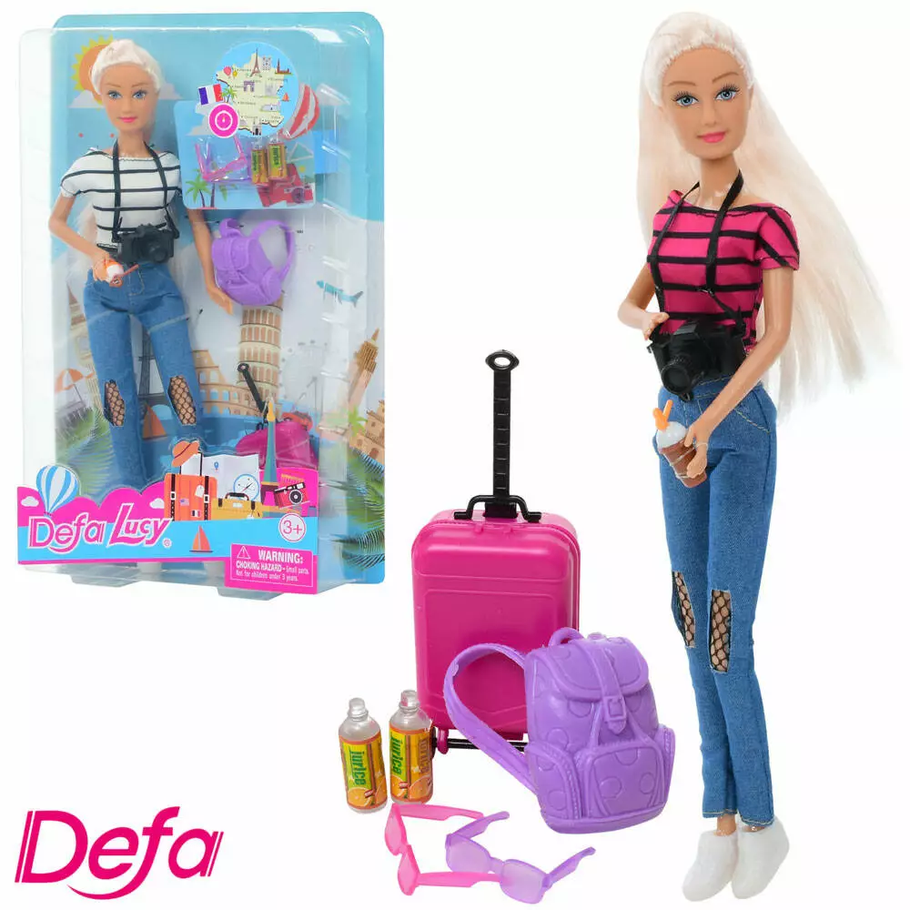 Лялька DEFA 8389 валіза, рюкзак, фотоапарат, 2 кольори, бліст., 20,5-32-6 см.