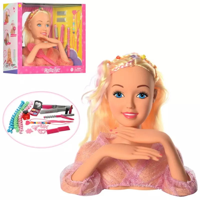 Лялька DEFA 8415 голова для зачісок, плойка, косметика, заколочки, 2 види, кор., 31,5-27-13,5 см.