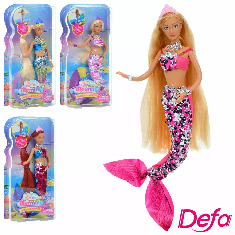 Лялька DEFA 8433 русалка, вбрання з паєтками, 4 види, лист, 17-33,5-5 см.