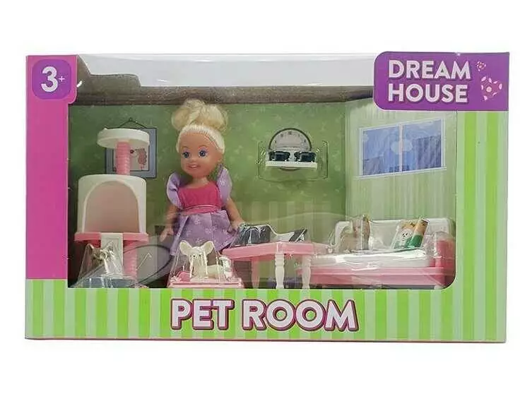 Лялька K 899-132 (48/2) висота 10 см, кімната для вихованців, аксесуари, улюбленці, предмети декору, в коробці
