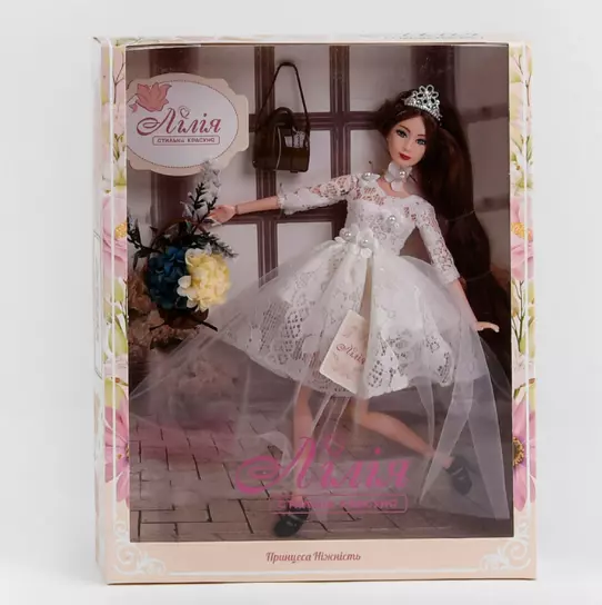 Лялька “Лілія” ТК - 10326 - це втілення жіночності та ніжності, вона начебто неймовірної краси витончена квіточка з ніжними пелюстками. Адже представлений образ принцеси Ніжності зачаровує та надихає з перших секунд! особливості: - витончені риси обличчя та витончена фігура; - шовковисте довге волосся, яке легко піддається моделюванню зачісок; - стильне вишукане вбрання виконане з високоякісних текстильних матеріалів; - Чудовий набір аксесуарів. Довговолоса красуня має бездоганну зовнішність і ідеальний естетичний смак. Легкий макіяж, акуратна зачіска та шикарна сукня з модними аксесуарами надають їй особливого шарму та захоплення. Принцеса Ніжність одягнена в чудову білу сукню, яка чудово прикрашена м'яким фатином і доповнена ніжним мереживом з перламутровими бусинами. Не обійшлося в наборі без красивих додаткових аксесуарів. Йдеться про сумочку та кошики з квітами. Лялечка виконана з високоякісного пластику та має безліч точок артикуляції, руки згинаються у ліктях та зап'ястях, а ноги у колінах.